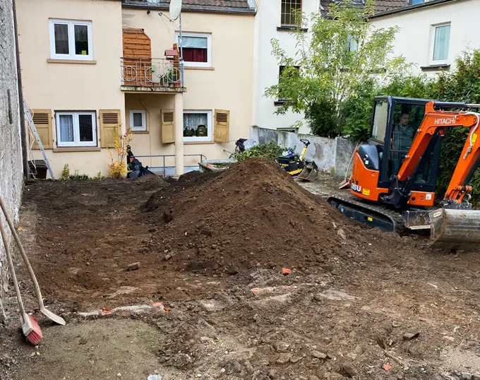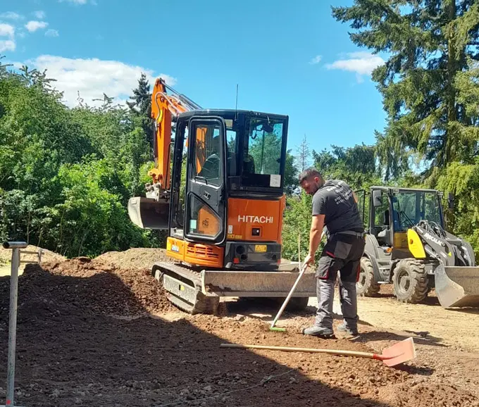 Mit Erdarbeiten bilden wir das Fundament für jedes erfolgreiche Landschafts- und Bauvorhaben. Wir setzen auf modernste Technik und umfassendes Know-how, um Ihr Gelände optimal vorzubereiten. Dabei garantieren wir eine sorgfältige Planung und Durchführung aller notwendigen Arbeiten, die die besten Voraussetzungen für Ihr Projekt schaffen.